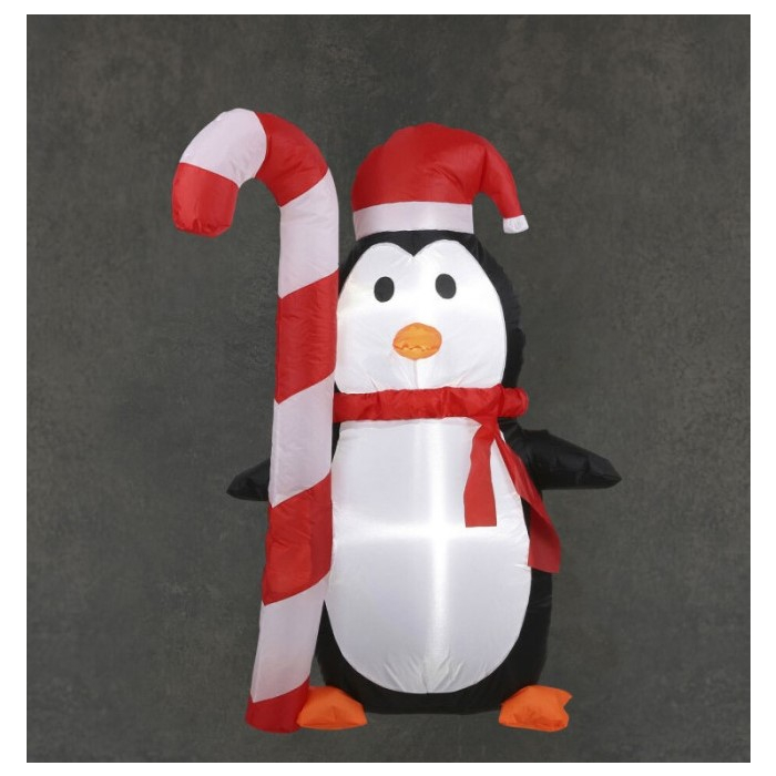 FIGURA pingvin na naduvavanje donosi vedrinu i šarm Vašem prazničnom dekoru. Sa dimenzijama 60x40x120 cm, ovaj simpatični pingvin stvara radosnu atmosferu, dok LED svjetla osvjetljavaju njegovu siluetu i dodaju magični efekat.