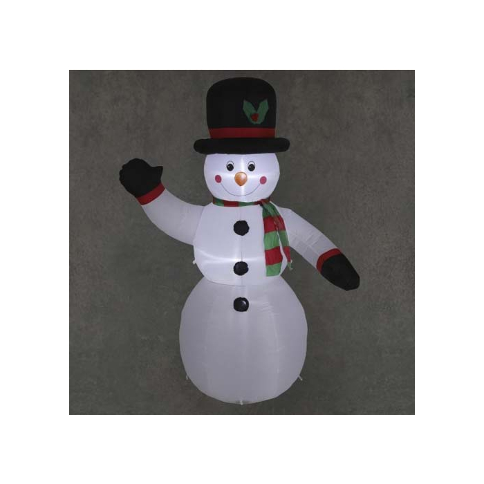 FIGURA Snješko Bijelić na naduvavanje dolazi sa ugrađenim LED osvjetljenjem koje pruža predivan, svjetlucavi efekt tokom noći. Ovaj ukras visok 2 metra savršen je za vanjsko ili unutrašnje ukrašavanje vašeg doma tokom praznika. Zahvaljujući naduvavanju, lako se postavlja i skladišti, dok LED svjetla donose dodatni svečani sjaj. Snješko Bijelić u tradicionalnom izdanju s osmijehom i detaljima poput šešira i šalova, unosi veselu prazničnu atmosferu u svaki prostor. Dimenzije: 126x65x200cm
