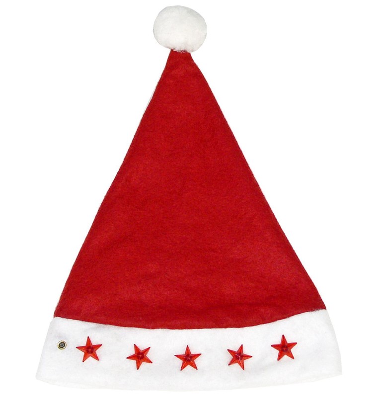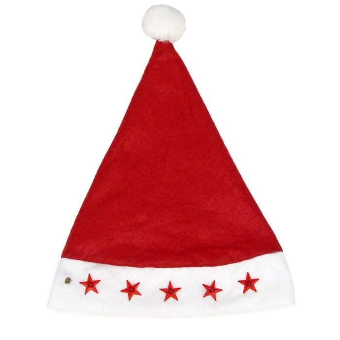 KAPA novogodišnja sa svjetlom, napravljena od plišanog materijala, super mekana i udobna za nošenje.Širina ovog proizvoda je 29 cm, a ukupna visina 40 cm.Savršena veličina ove novogodišnje kape je vrlo pogodna za većinu odraslih, muškaraca i žena.Veličine: 40 x 29 cmMaterijal izrade: 100% poliester5 lampica u obliku zvjezdica koje svijetleRadi na baterije 2xAA 1,5 V (nisu priložene)