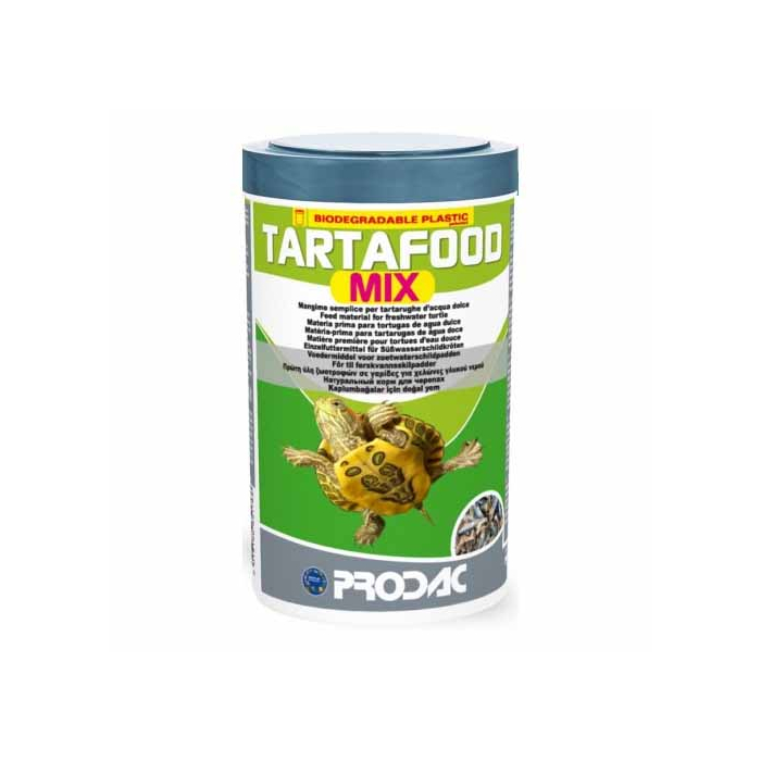 PRODAC hrana za kornjače mix 1200ml kompletna hrana za slatkovodne kornjače. Hrana sadrži sušenu ribu i vodene beskičmenjake (račiće), u omjeru 50% :50%.Pakovanje je 1200 ml.