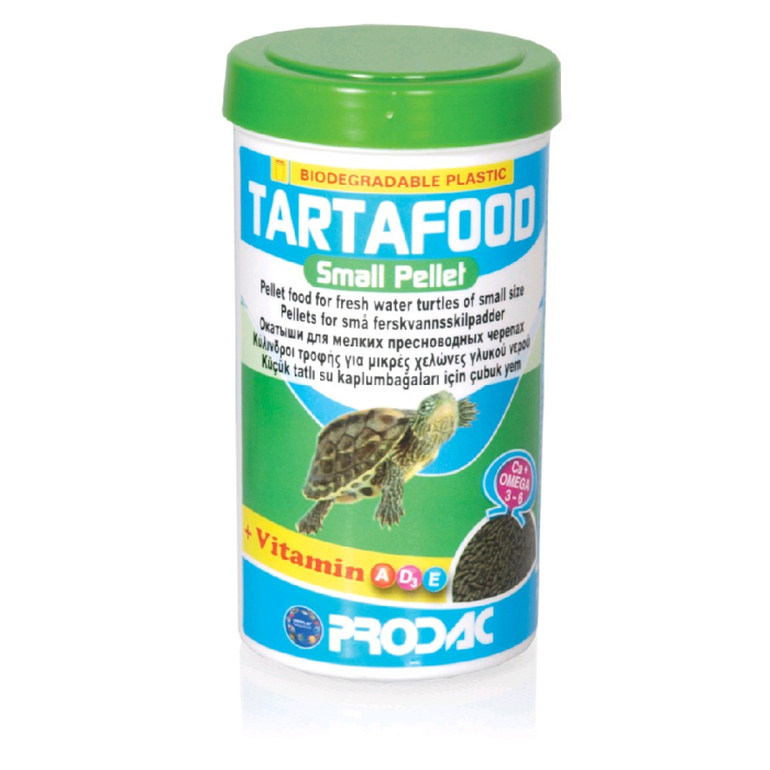 PRODAC hrana za kornjače pelet small 250mlkompletna hranau obliku plutajućih peleta za male vodene kornjače. Glavni sastojci hrane su žitarice, riblje brašno, meso, povrće, alge i brašno od rakova i mekušaca. Pakovanje je 250 ml.