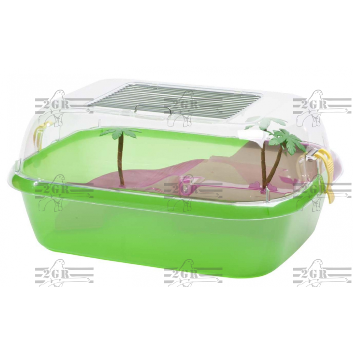 2GR terarijum za kornjače DAFFY je terarijum zatvoreni sa ostrvom i palmama, izrađen od kvalitetnog PVC materijala. Dimenzije terarijuma su 44x34x20 cm.