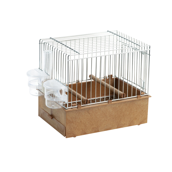 2GR kavez mali za šumske ptice ima plastično dno, dvije hranilice, dvije pojilice i dva držača.Dimenzije kaveza su 24x16x20cm.