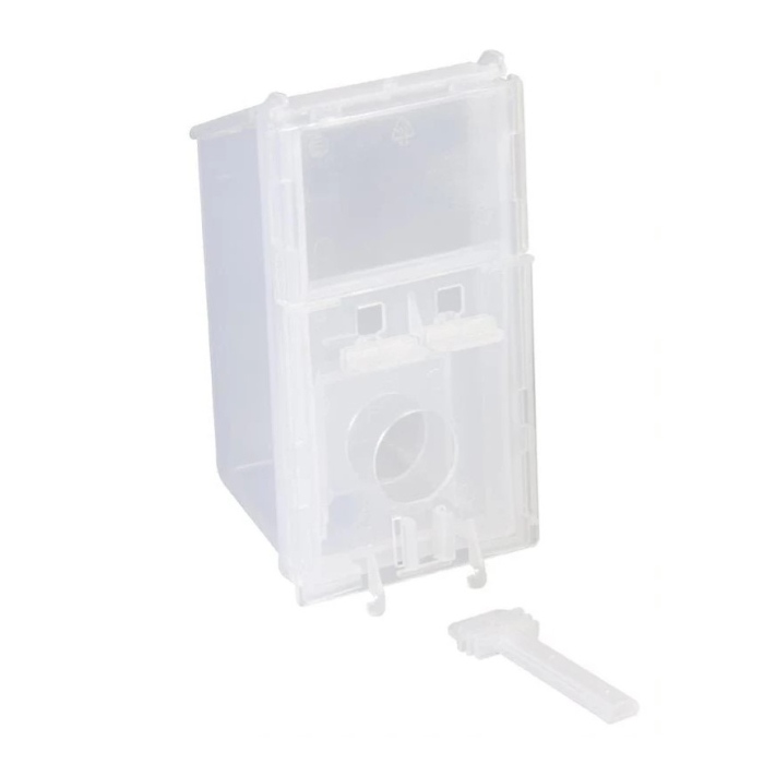 2GR hranilica za volijere je PVC hranilica zatvorena za volijere dimenzija 8x7x16 cm.