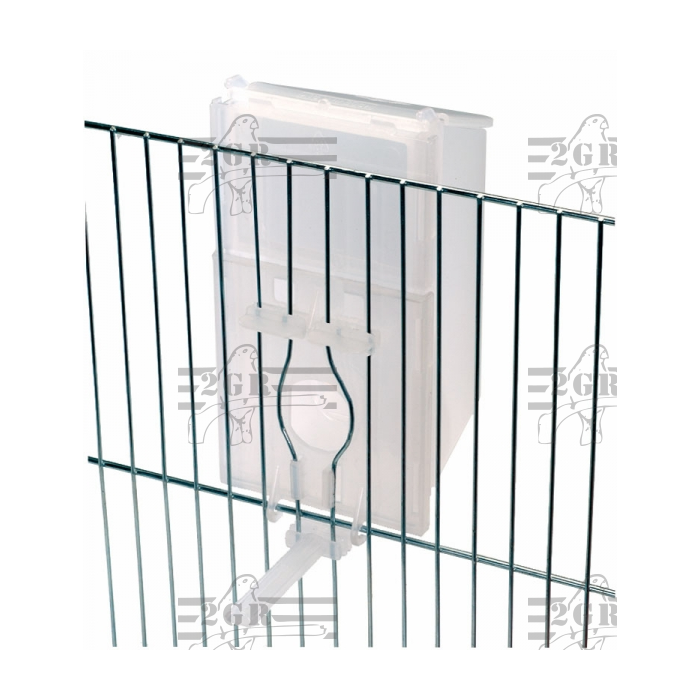 2GR hranilica za volijere je PVC hranilica sa stajalicom zatvorena vanjska. Dimenzije hranilice su 8x7x16 cm.