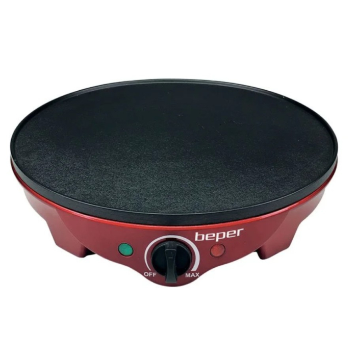 PLOTNA za palačinke BT 700Y Beper je električni kuhinjski aparat namijenjen brzoj i jednostavnoj pripremi palačinki kod kuće. Opremljena je neprijanjajućom teflonskom pločom prečnika 30 cm koja omogućava ravnomjerno pečenje i lako skidanje palačinki. Ima snagu od 1300 W što obezbjeđuje brzo zagrijavanje i stabilnu temperaturu tokom rada. Poseduje regulator temperature i indikatorska svjetla za lakšu kontrolu procesa pečenja. Idealna je za svakodnevnu upotrebu i pripremu tankih, ravnomjerno pečen
