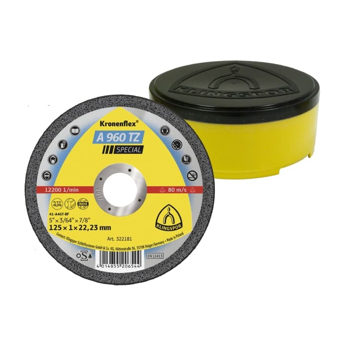 KLINGSPOR ploča rezna 115x1x22- A 960 TZ je odlična rezna ploča napravljena od kvalitetnih materijala sa brzo i sugurno rezanje zahvaljujući čvrstom tijelu.