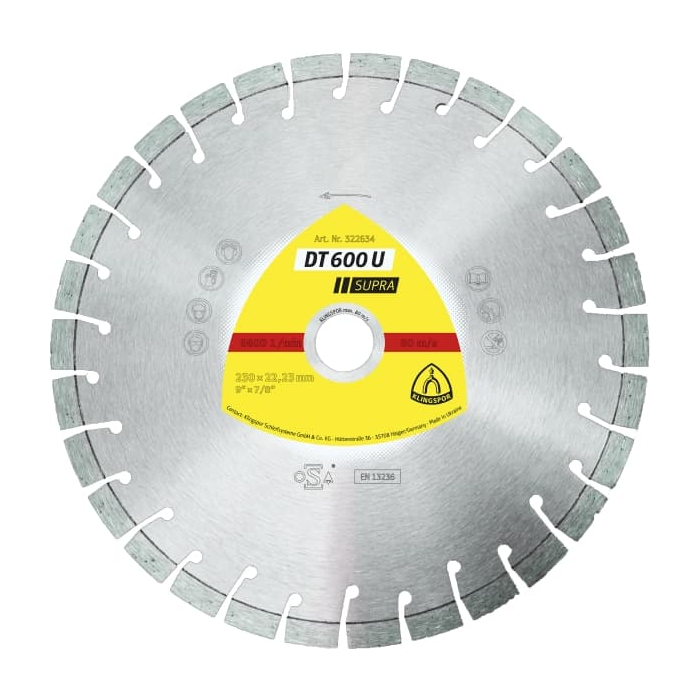 KLINGSPOR ploča rezna dijamant 450x3.6x25.4 48 segmentna DT600U je odlična rezna ploča namjenjana siječenju betonskih elemenata. Sigurno i brzo rezanje zahvaljujući velikoj oštrini.