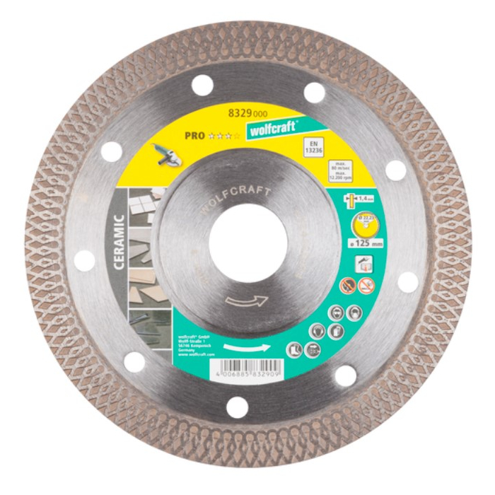 WOLFCRAFT ploča rezana Pogodno za ugaone brusilice. Uvijek nositi zaštitne naočale i drugu neophodnu zaštitnu opremu kada radite s dijamantskom oštricom.