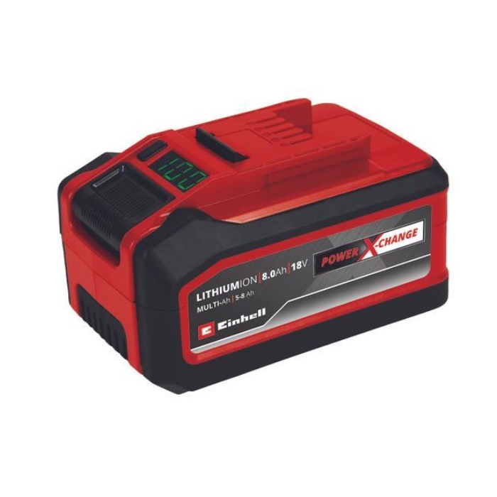EINHELL baterija 18V 5-8Ah Multi-Ah PXC snabdijeva sve akumulatorske alate velikom snagom i izdržljivošću. Zahvaljujući MULTI-Ah tehnologiji, može se koristiti kao baterija od 8Ah za maksimalno vrijeme rada i kao baterija od 5Ah za 3x duži ukupni vijek trajanja. Najnovija generacija litijum-jonskih ćelija obezbeđuje 100% više snage za maksimalne performanse u svim primjenama.