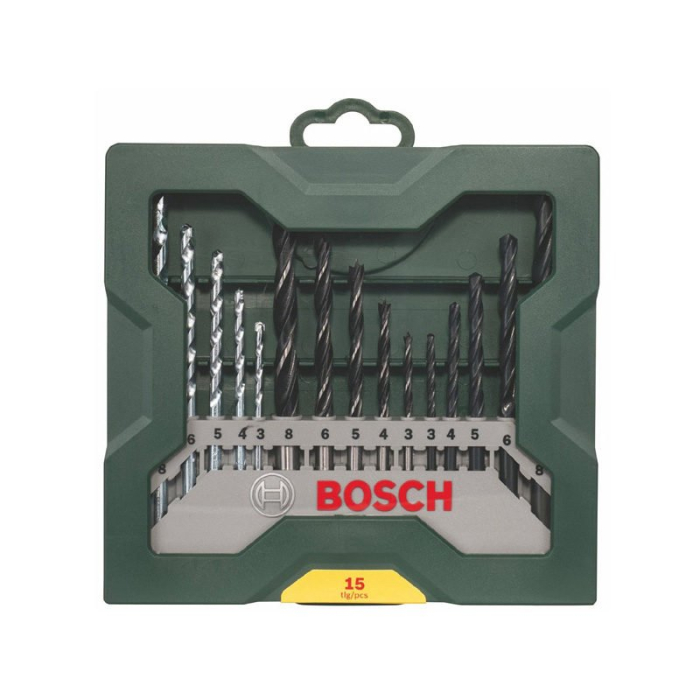 BOSCH set burgija 15- dijelni se sastoji od:-5 burgija za kamen s vrhom od tvrdog metala za udarno bušenje. - 5 burgija za drvo s vrhom za centriranje- 5 kvalitetnih burgija za metal od brzoreznog čelika za precizne provrte. Burgije dolaze u praktičnoj plastičnoj kutiji za odlaganje.