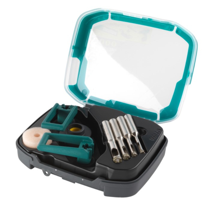 WOLFCRAFT krune dijamantske dolaze u petodijelnom setu. Sadrži dijamantski obložene prstenaste bitove prečnika 5, 6, 8 i 10mm kao i vodilicu sa integrisanom sunđerom za pravilno vodeno hlađenje dijamantskog premaza. Omogućava da izbušite tačne rupe u svim vrstama zidnih i podnih pločica sa dubinom rezanja od 30 mm.
