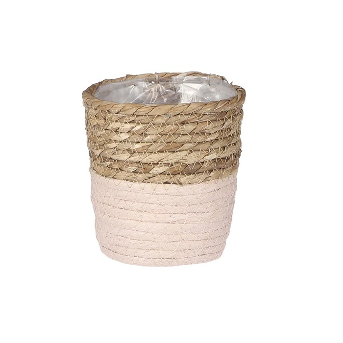 SAKSIJA ukrasna Rachel Pink je daje prirodan dodir vašem enterijeru. Korpa je napravljena od morske trave i veoma je ekološki prihvatljiva. Ova prirodna podloga je jasno vidljiva u gornjem dijelu korpe, dok je donji sloj ružičaste boje. Plastična obloga čini korpu veoma pogodnom za lepu biljku, ali u nju možete i pohraniti neke stvari. Dimenzije: prečnik 18cm, visina 18cm.