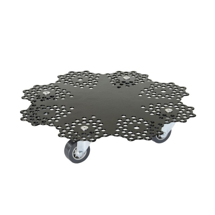 WAGNER Design podmetač metalni sa točkićima GH0949 zrađen od čvrste čelične ploče sa šarmantnim uzorkom kreiranim preciznim rezanjem. Opremljen je sa četiri WAGNER točkića za teške uslove rada koji omogućavaju udobno kretanje teških saksija do 100 kg. Mekani točkići su nježni prema osjetljivim podnim oblogama kao što su parket, laminat itd.Maksimalna nosivost: 100kgPrečnik 30cm, visina 55mm.