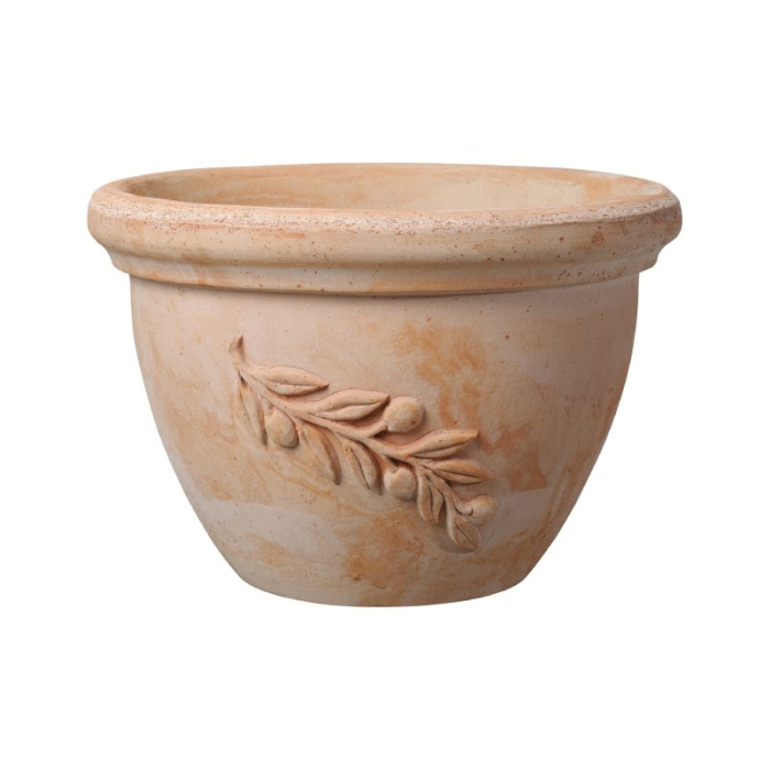 DEROMA saksija glinena 18CM u Galestro terakoti. Zapremina 1,6 L. Ručno obrađena, otporna na mraz, porozna, izbušena. Ružičasta zemljana boja.