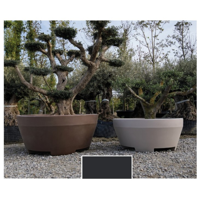 SAKSIJA Ercole FI185cm je saksija vrlo debelog zida sa glatkom mat završnom obradom. Idealna za uzgoj velikih biljaka ili malih stabala.Dimenzije: prečnik 185cm, visina 79cm.