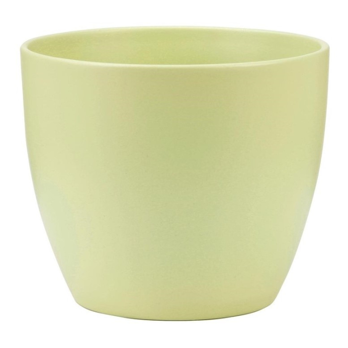 SCHEURICH saksija ukrasna svijetlo zelena 920, okruglog oblika i sa završetkom koji će uljepšati svaki kutak. Promjera od 22 cm pogodna za manje kućne biljke. Može se prilagoditi svakom dekorativnom stilu, donoseći više boje i elegancije.Zapremnine je 5,5 litara. Lako se čisti, krpom ili krpom i otopinom vode i deterdženta. 100% vodootporan. Proizvedeno u Njemačkoj, od izdržljivog keramičkog materijala.Dimenzije: 19,5 x 20 cm (visina x prečnik)Boja: ZelenaMaterijal: Keramika