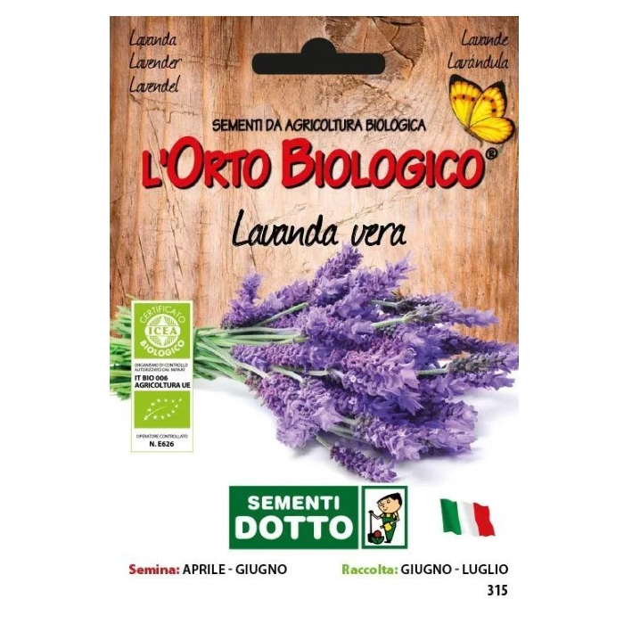 SEMENTI DOTTO sjeme lavande Bio je prirodno sjeme lavande koje potiče iz ekološke proizvodnje, bez upotrebe pesticida i hemikalija. Savršeno je za uzgoj lavande u vašem vrtu, donoseći ne samo predivne mirisne cvjetove, već i prirodnu ljepotu u vaš prostor. Lavanda je poznata po svojoj otpornosti na sušu i odlična je biljka za privlačenje pčela i drugih korisnih insekata.