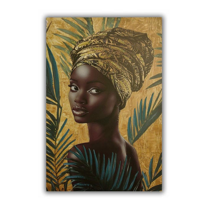 SLIKA portret žene u zlatnim tonovima sa 30% ručnog rada prikazuje portret žene u kombinaciji toplih zlatnih tonova i zelenih biljnih motiva. Kontrast tamne figure i bogate pozadine stvara snažan i elegantan vizuelni efekat. Reljefni detalji dodatno naglašavaju umjetnički karakter, čineći je idealnim izborom za moderan enterijer gdje postaje upečatljiv dekorativni akcenat.Dimenzije: 70x100cm