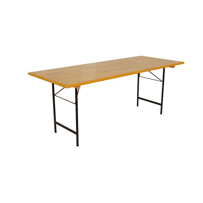 STO slavski 900X2000MM sa okruglim cijevima izrađen od hladnovalajnih čeličnih cijevi lakiranih bojom u prahu i drvene jelove ploče debljine 28mm obojene UV lakom. Noge su sklopive i imaju pvc čepove radi zaštite podnih površina.
