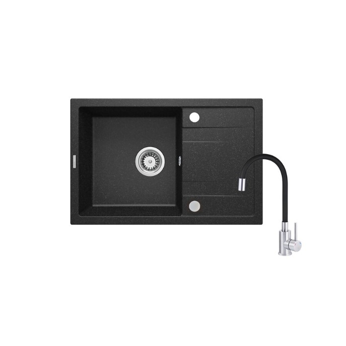 DEANTE sudopera Corio je granitna sudoper sa elastičnim crijevom koja predstavlja savršeno usklađen set za modernu kuhinju. Granit od kojeg je napravljen set odlikuje se izuzetnom otpornošću na udarce, visoke temperature i promjenu boje. Visoka baterija olakšava rad u kuhinji, omogućava Vam da lako napunite vodom čak i vrlo visok lonac. Cijela je završena u elegantnoj grafitnoj boji. Dimenzije: 670x440x175cm.