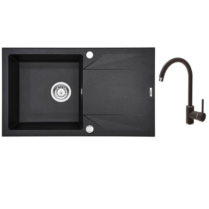 DEANTE sudoper granit Evora kompaktno je i elegantno rješenje za moderne kuhinje. Izrađen od visokokvalitetnog granitnog kompozita, otporan je na ogrebotine, visoke temperature i mrlje, osiguravajući dugotrajnu izdržljivost i lako održavanje. Sa dimenzijama 780x440 mm pruža funkcionalnost bez kompromisa. U kompletu dolazi i baterija koja upotpunjuje njegov moderan dizajn i doprinosi praktičnostiDimenzije (dxšxv): 780x440x180mm