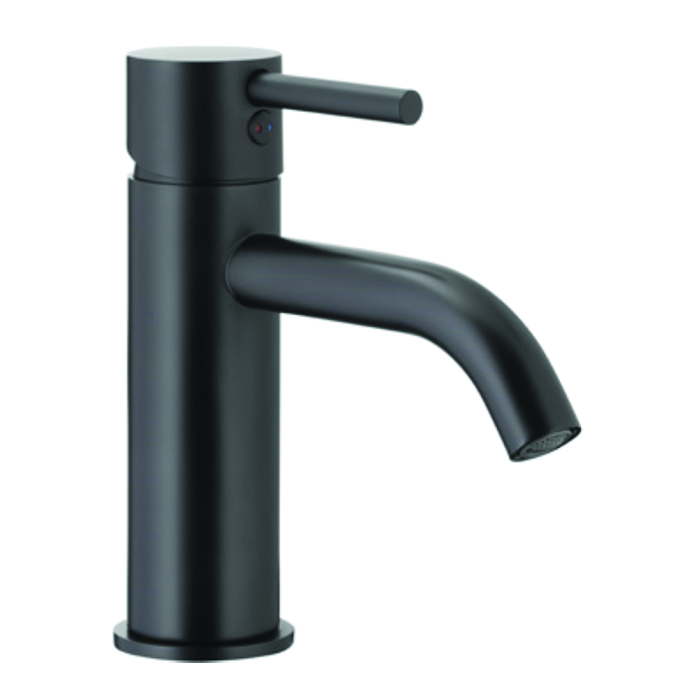 Armatura baterija/slavina za umivaonik Neda neobičnog dizajna u mat crnoj boji namijenjena je moderna kupatila. Visokokvalitetni premaz izuzetno je otporan na oštećenja. Izrađena je od mesinga. Dužina izljeva: 128 mm. Slavina je u kompletu sa opremom za ugradnju.