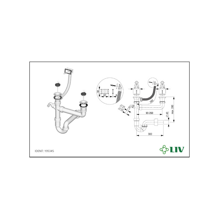 LIV sifon dvodjelni za sudoper sa kvadratnim prelivom - od dugotrajne plastike, jednostavna montaža. Za sve uobičajne sudopere.