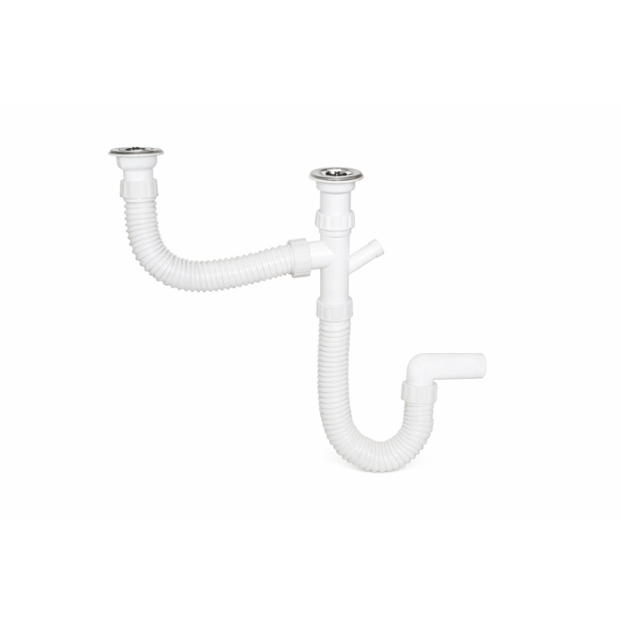 SIFON fleksibilni dvodjelni za sudoper - sa priključkom za perilicu. Inox vijak i rešetka. Proizvođač Zorex.