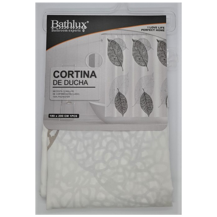 ZAVJESA za kupatilo bijela sa motivima lista 180x200cm