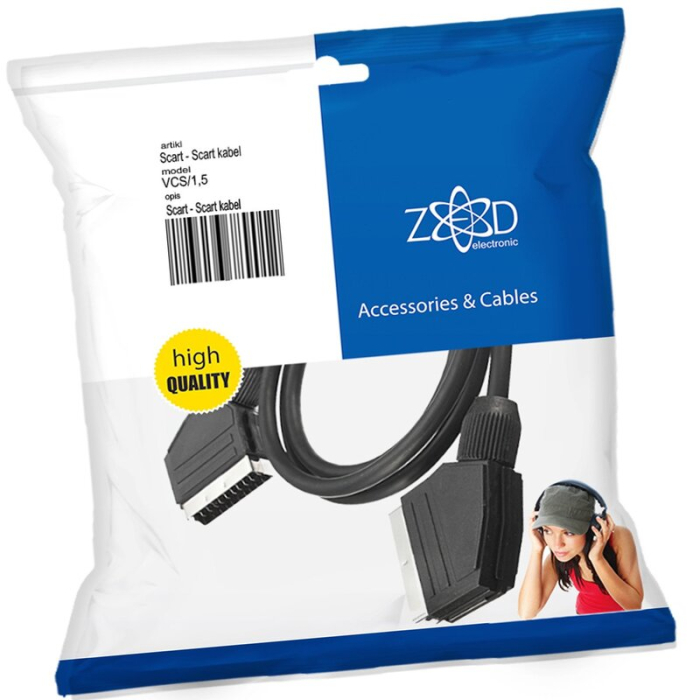 ZED ELECTRONICS kabal scart oklopljeni 1,5 m sa 21-žicom povezana radi prijenosa RGB i SVHS signala kao i stereo zvuka, duzina 1,5 m, poboljšani kvalitet.