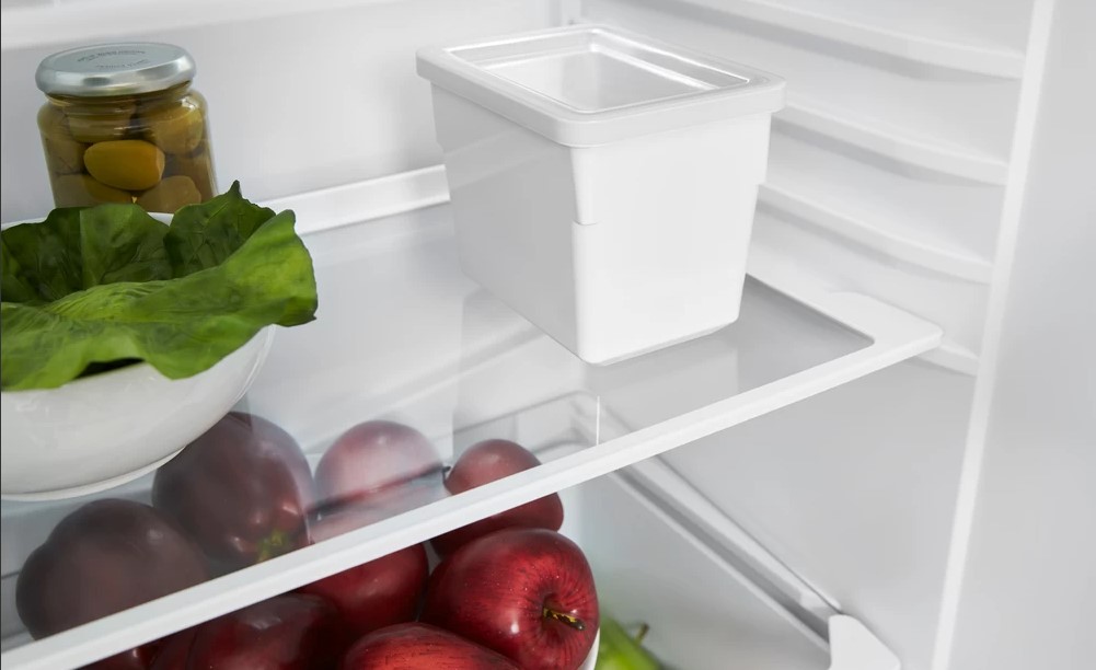 Oprema frižidera | 2 staklene police 2 kutije za voće i povrće Unutrašnje svetlo i termometar 3 police u vratima - Dugačka polica sa poklopcem, Srednja polica, Polica za flaše Držač za jaja |