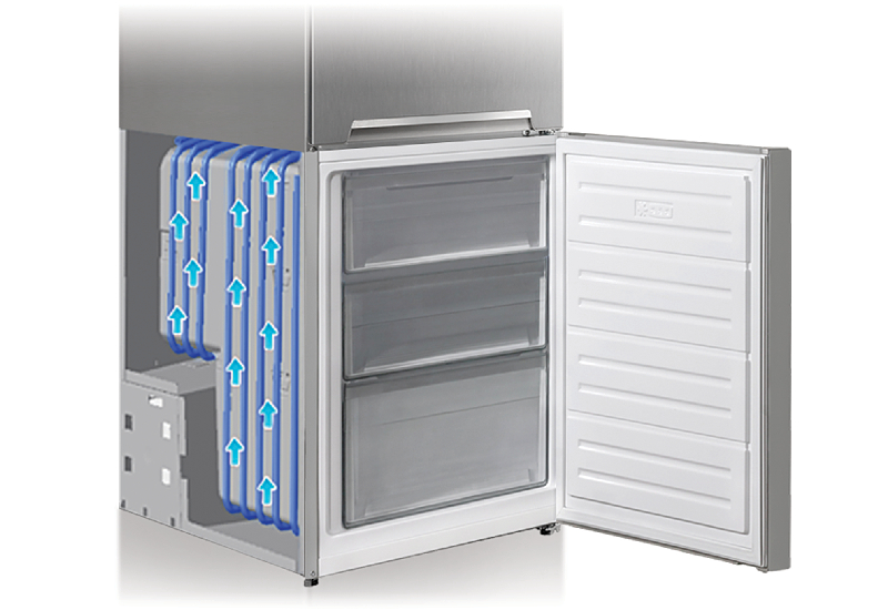 Tehnologija Less Frost radi sa skrivenim cijevima isparivača koje kruže oko odjeljka zamrzivača, čime se postiže ujednačena i stabilna emisija vazduha. Na taj način se osigurava brzo i učinkovito hlađenje, čime se smanjuje stvaranje naslaga leda.