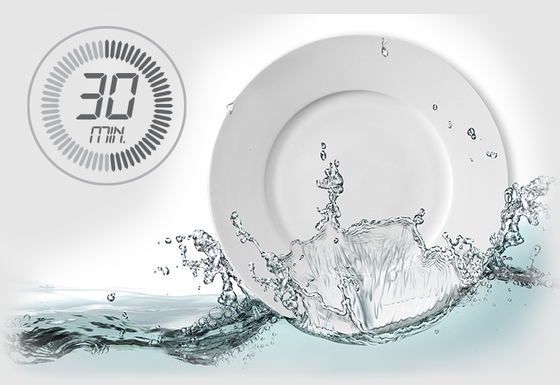 Brzi program od 30 minuta koji kombinuje pranje i ispiranje sudova na temperaturi od 40°.