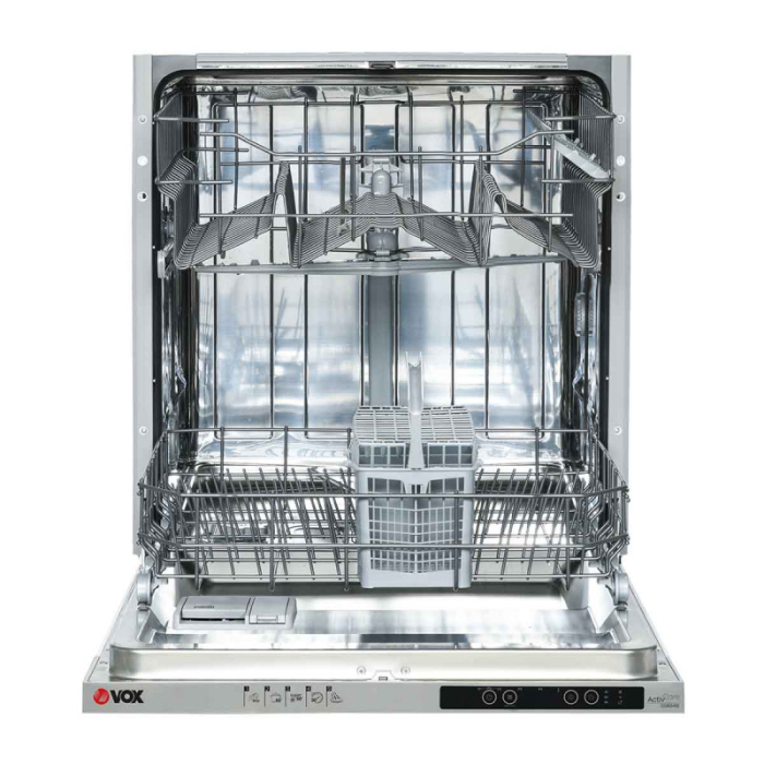 VOX ugradbena mašina za suđe GSI 6541E za pranje suđa, kapaciteta: 12 kompleta. Broj programa pranja: 5. Mogućnost odlaganja pranja do 9h. Energetska klasa: A+