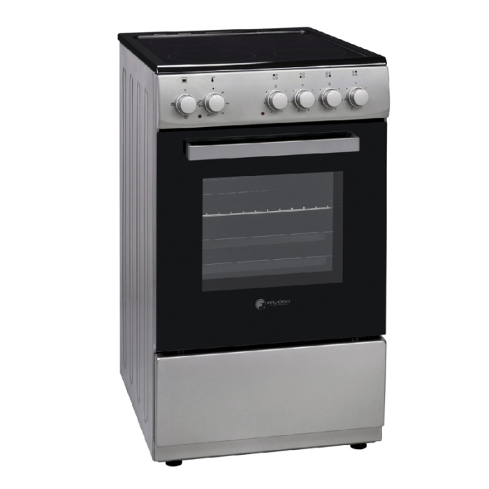 FAVORIT šporet električni CC 500 SF elegantnog dizajna, koji se lako uklapa u svaku kuhinju. Staklo-keramička ploča sa 4 ringle za kuvanje, rerna zapremine od 50 litara sa donjim i gornjim grijačem, svjetlo u rerni kao i ventilator. Uživajte u pripremi ukusne hrane.