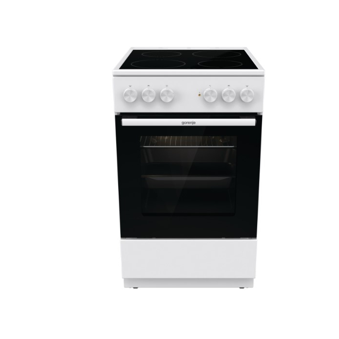 GORENJE šporet koristi staklokeramičku ploču sa četiri električne ringle, pružajući ravnomjerno zagrijavanje i jednostavno održavanje. Rerna je električna i nudi različite funkcije pečenja, uključujući mogućnost konvekcije za bolje raspoređivanje toplote i efikasnije pečenje. Šporet ima elegantan dizajn, sa staklokeramičkom pločom koja olakšava čišćenje, a dodatne sigurnosne funkcije poput zaštite od pregrijavanja čine ga sigurnim i praktičnim za upotrebu u svakom domaćinstvu.