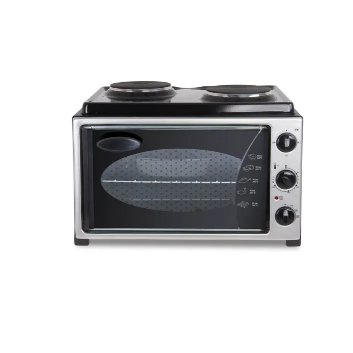 MTECH mini električni šporet KF5360 idealno je rješenje za male kuhinje, vikendice, studentske domove ili kao dodatni uređaj u većim kućanstvima. Ovaj kompaktni uređaj nudi sve što vam je potrebno za brzo i efikasno kuvanje. Pored dvije električne ploče za kuhanje, rerna ovog mini šporeta nudi dovoljno prostora za pečenje različitih vrsta jela, sa ravnomijernom distribucijom toplote koja garantuje savršeno pečena jela svaki put. Uz rernu dolazi i rešetka i pleh, što olakšava pripremu i pečenje.