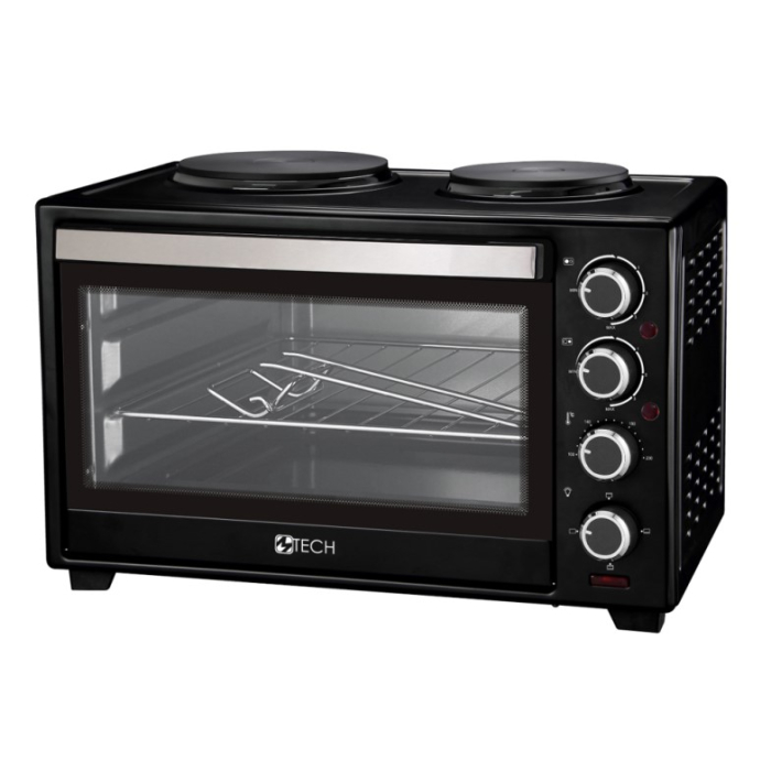 MTECH šporet mini elektrik TA-48B4 HL idealan je za manje kuhinje, apartmane ili vikendice zahvaljujući kompaktnim dimenzijama i praktičnom dizajnu. Rerna zapremine 48L sa snagom od 1500W ima duplo staklo i unutrašnje svjetlo, što omogućava pregled tokom pečenja. Opremljen je sa dvije ringle snage 1200W i 800W, te četiri prekidača za jednostavnu kontrolu rada.