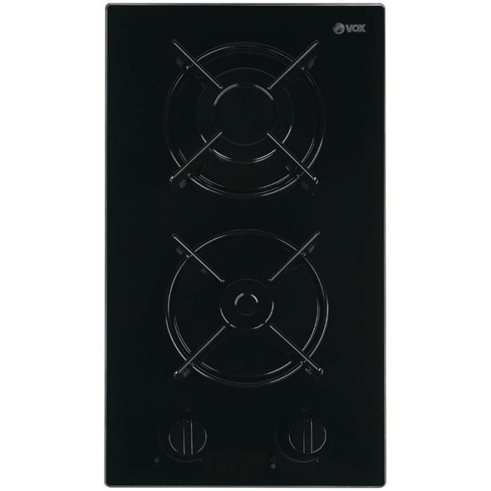 VOX ploča plinska EBC200GB sa 2 plinska gorionika iste veličine. Mehaničke komande za regulisanje protoka plina i jačine plamenika. Staklokeramička površina ploče pogodna za lako čišćenje i održavanje.