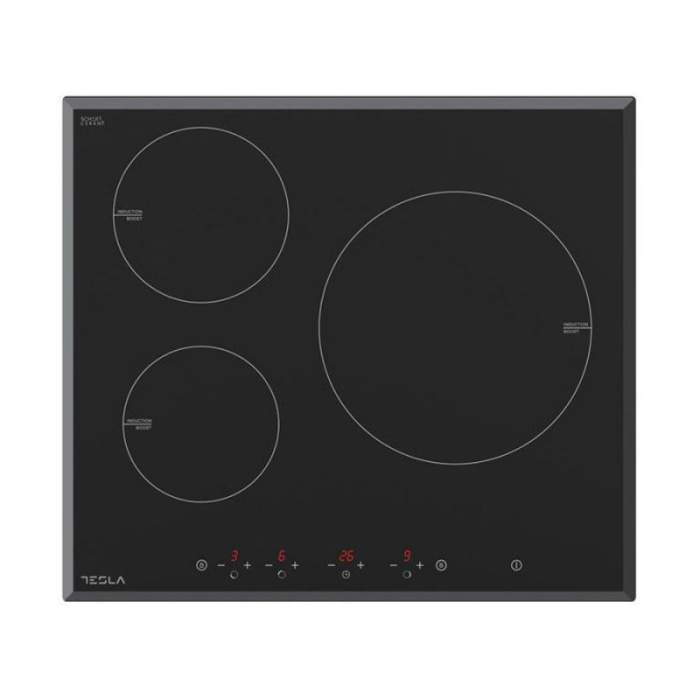 TESLA ugradbena ploča HI6300MB je indukcijska ploča sa podesivim nivoima snage, brušenim rubovima, sigurnosnim zaključavanjem, idikatorom preostale toplote i senzorskim tipkama.