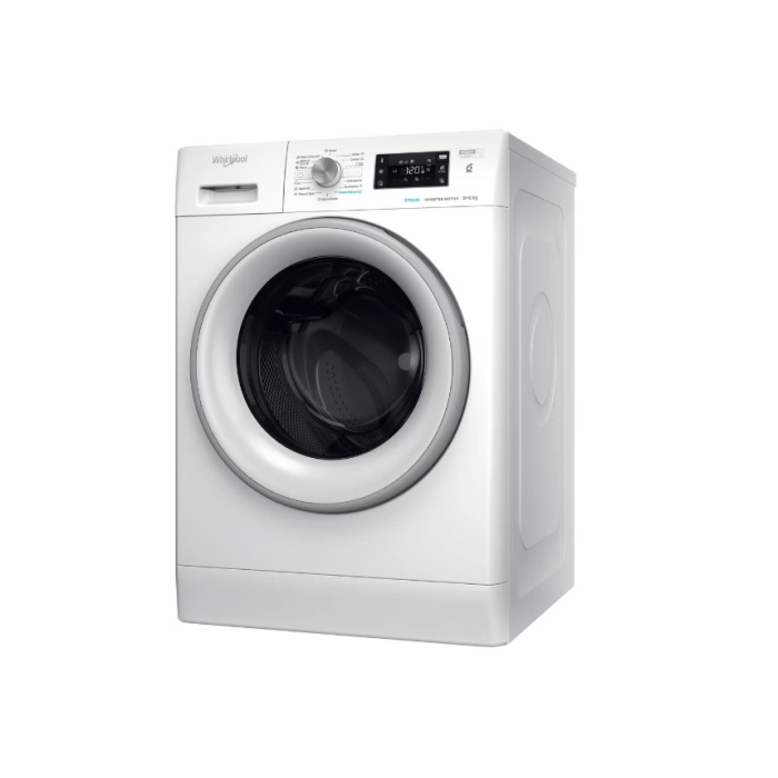 WHIRLPOOL mašina za pranje/ sušenje FFWDB 964369 SV, samostojeća. Izuzetno velika zapremina za pranje od 9kg veša. Zapremina za sušenje veša je 6 kg. Ekskluzivna 6th SENSE tehnologija koja stalno prati vlažnost u bubnju i time štiti Vašu odjeću i osigurava idealne rezultate pranja i sušenja. Brza, energetski efikasna centrifuga od 1400 okretaja u minuti.