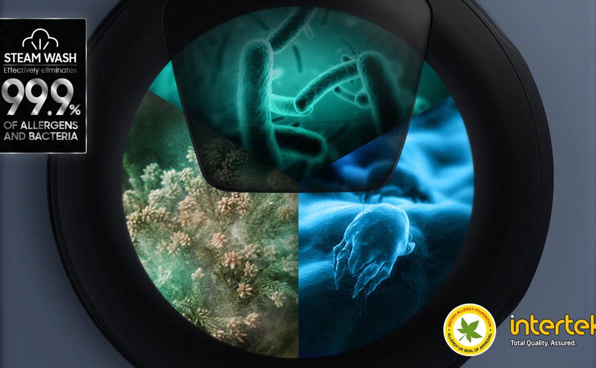 Dubinsko i higijensko čišćenje odijeće parom. Program Hygiene Steam (higijenska para) poboljšava kvalitet pranja bez prethodnog tretiranja. Para se ispušta sa dna bubnja, tako da je svaki predmet temeljno ispunjen parom. Time se uklanjaju tvrdokorna prljavština i 99,9% bakterija i alergena.
