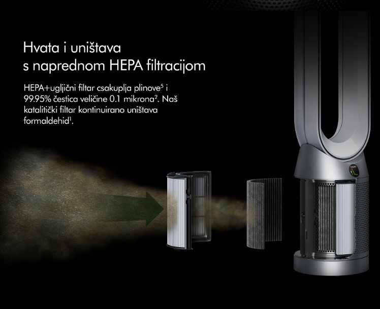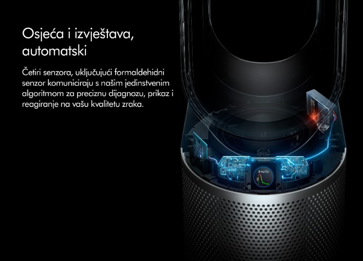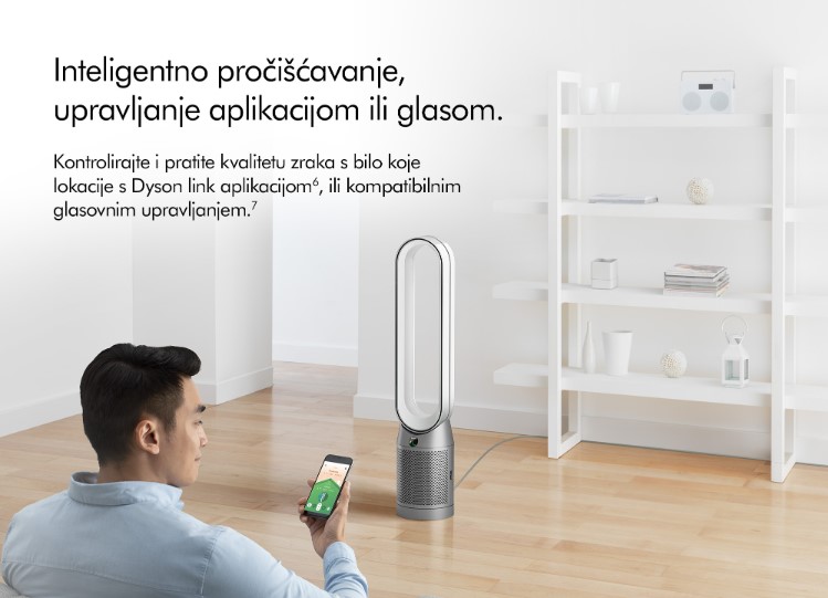 DYSON prečišćivač vazduha Pure Cool Link TP07 automatski prepoznaje i uklanja zagađivače iz prostora, osiguravajući čist i svjež vazduh u domu. Zahvaljujući potpuno zatvorenom sistemu po HEPA H13 standardu, zadržava 99,97% čestica veličine do 0,3 mikrona. Kombinacija HEPA i karbonskog filtera pruža potpunu zaštitu, dok Air Multiplier tehnologija ravnomjerno raspoređuje pročišćen vazduh u prostoriji.