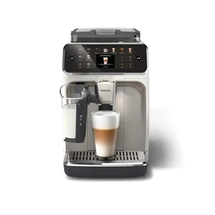 PHILIPS aparat za espresso kafu EP5543/90 omogućava pripremu 20 različitih toplih i ledenih napitaka, uz jednostavno korišćenje putem intuitivnog TFT ekrana. LatteGo sistem za mlijeko čisti se za manje od 10 sekundi, a tehnologije SilentBrew i Aroma Extract osiguravaju tiši rad i savršenu aromu. Sa ugrađenim keramičkim mlinom (12 podešavanja), kapacitetom za vodu 1,8 l i zrna 275 g, uređaj nudi i 4 korisnička profila, QuickStart funkciju i napredno filtriranje pomoću AquaClean sistema.