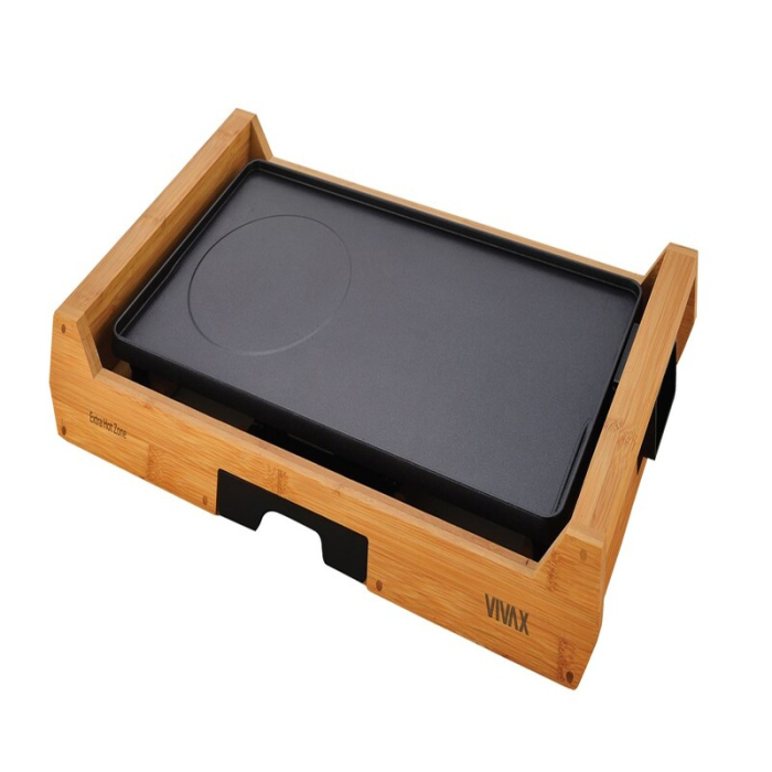 VIVAX električni roštilj EG-4020HZ ima površinu za pečenje 43x23cm sa “hot zone”područjem prečnika 15cm. Površina za pečenje je glatka i neljepljiva i može se odvajati. Posjeduje drveno kućište. Snaga roštilja je 2200W.