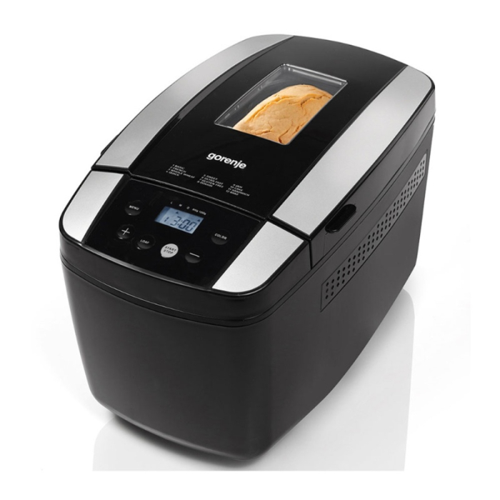 GORENJE pekač hljeba BM 1210BK ima 12 programa, uključujući i gluten free program. Snaga grijača je 800 W. Sve sastojke prema receptu uspite u aparat za pečenje, izaberete odgovarajući program AutoMenu i namjestite početak pečenja tako da hljeb bude pečen točno onda kada vi to želite.