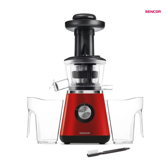 SENCOR sokovnik SSJ44042RD omogućava uživanje u svježim i zdravim sokovima svaki dan. Snažan motor od 400 W obezbjeđuje do 15 minuta neprekidnog rada, dok sistem automatskog odvajanja pulpe garantuje bistar sok. Spremnik od 0,8 L i mikro cjedilo od inoxa olakšavaju dugotrajnu upotrebu. Trostruka zaštita i protuklizne nožice pružaju sigurnost i stabilnost. Sa 60 okr./min i tihim radom ispod 70 dB, ovaj sokovnik je praktičan, efikasan i pouzdan dodatak svakoj kuhinji.