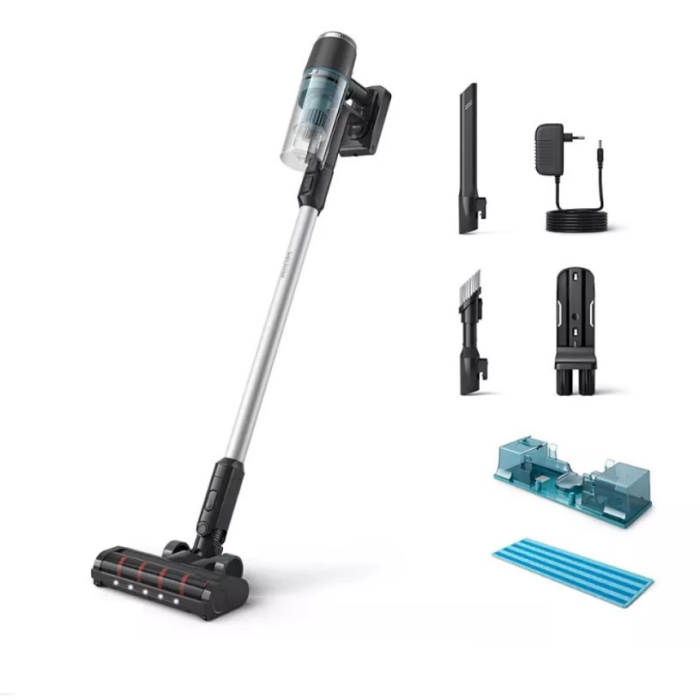 Snažna tehnologija pruža savršenu kombinaciju učinkovitosti i rezultata. Dizajnirana je za snažno usisavanje prašine, a istovremeno osigurava do 60 min rada u normalnom načinu rada i 15 min u turbo načinu rada.