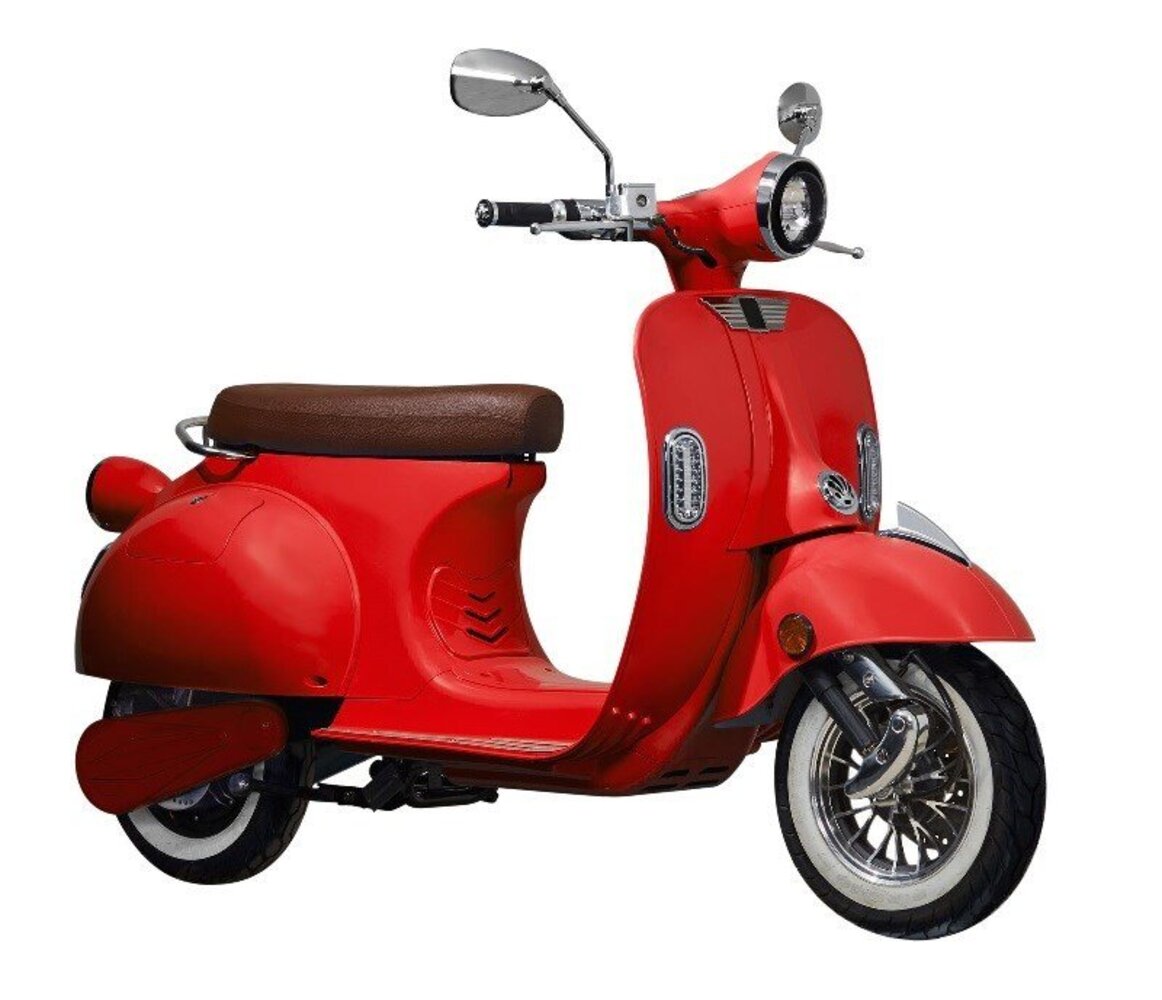 SKUTER električni EV2000 crveni je kompletno električni skuter snage 2000W koji podsjeća na Vespa retro dizajn skutera . Veliki kapacitet baterije daje mogućnost prelaženja 80-90 kilometara sa 1 punjenjem baterije koje traje između 6-8 sati. Maksimalna brzina 45 km/h.